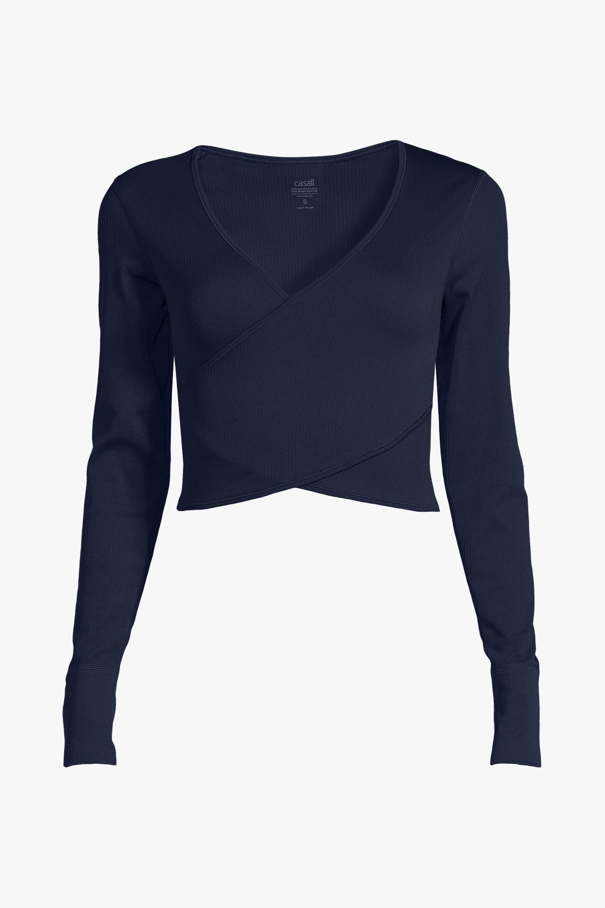 A soft, dance-inspired wrap sweater in a feminine, stylish design from Casall. Made from a recycled and ribbed material with a matte finish. Waist-length model with deep v-neck and cuffed sleeves.