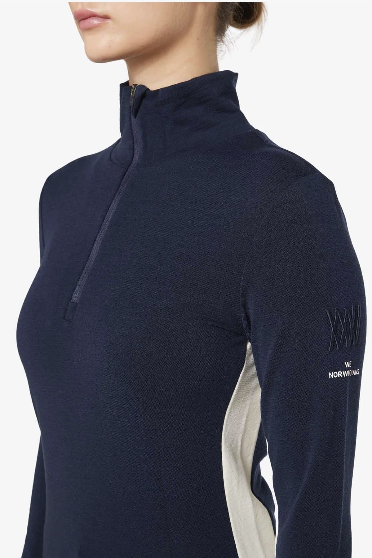 The Voss Zip-Up with color block panels is a classic piece that can be used for all activities, as either a base-layer or mid-layer. It's made from our picqu fabric and matches perfectly the Voss leggings with panels in the sides. Finished with an extra long zipper in front for ventilation, and a tonal, printed logo with embroidery text on the sleeve.
