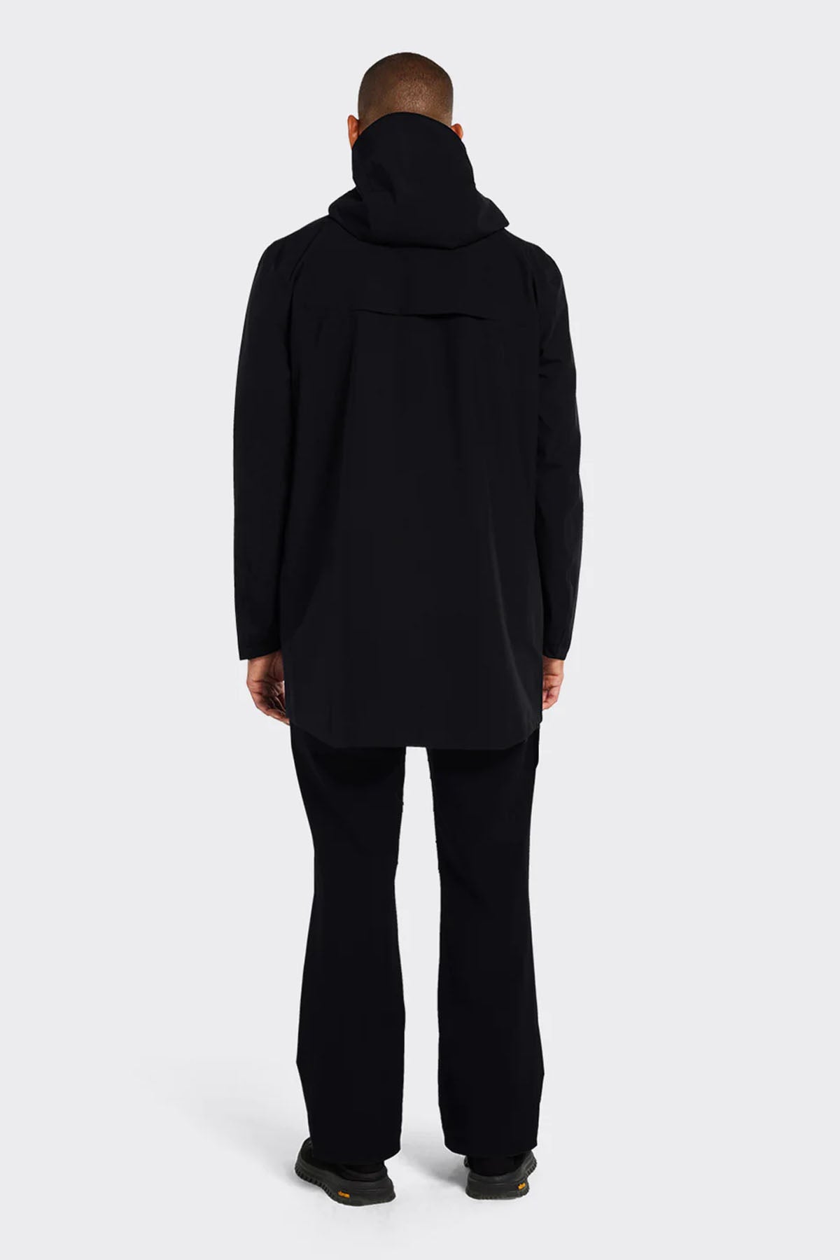 The coat has a straight fit and medium length, and the hood has a molded brim that you can adjust to fit your needs.