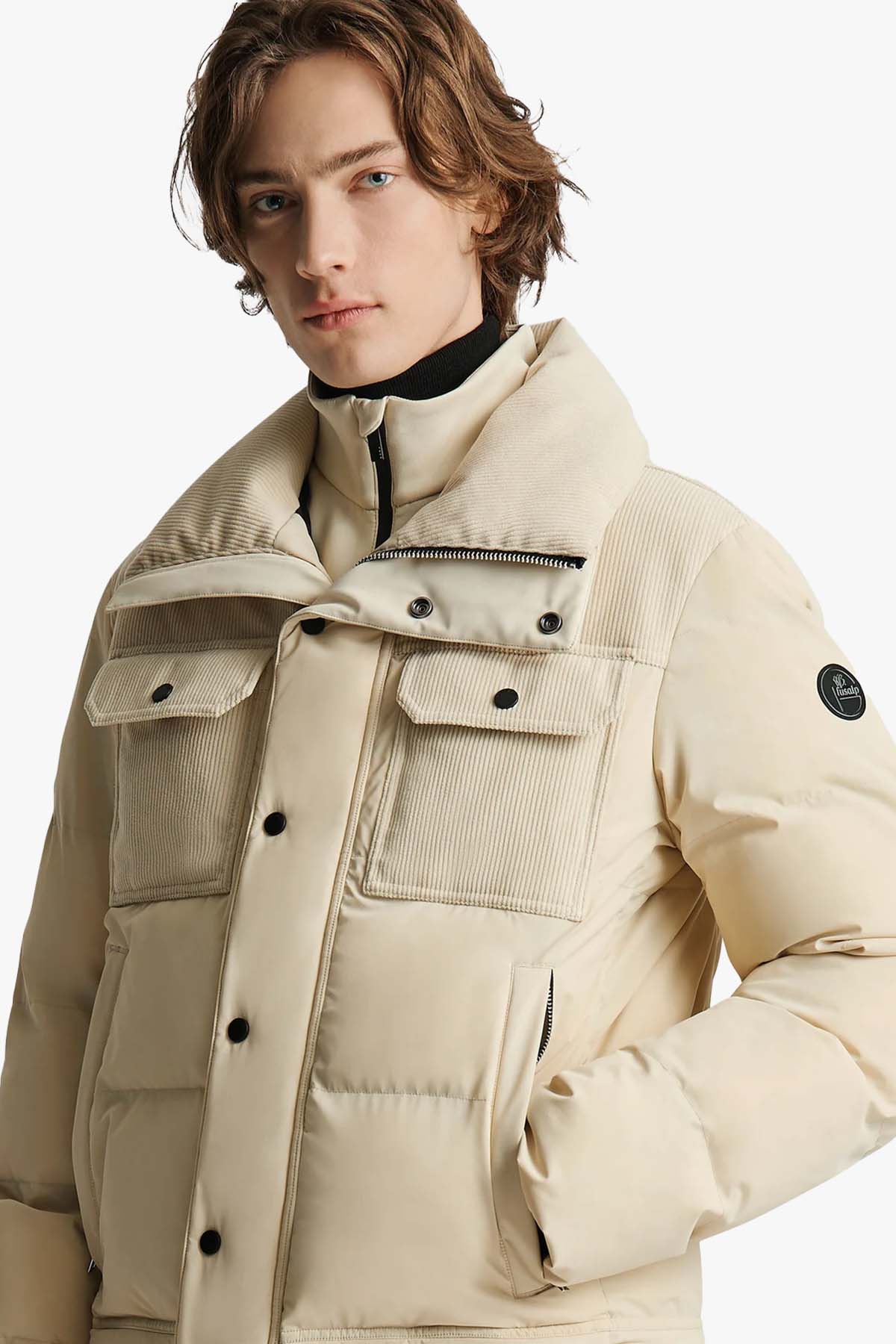 Carlo Velvet er en sofistikert og teknisk jakke inspirert av den klassiske denimjakken, her gjenskapt i en moderne, høyfunksjonell versjon. Den er konstruert i vannavstøtende og vanntett iriserende canvas kombinert med softshell som gir stretch, beskyttelse og en distinkt finish. Sorona® syntetisk dun sørger for varme selv i ekstreme temperaturer, samtidig som jakken beholder en lett og smidig følelse. Cordfløyelsdetaljer på overkroppen, lommer og krage gir et eksklusivt taktilt uttrykk.